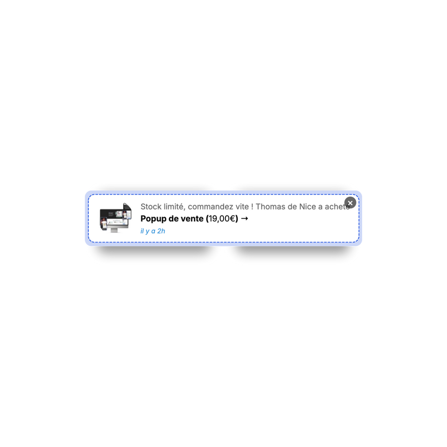 Créez un sentiment d’urgence et rassurez vos visiteurs avec des popups de ventes en temps réel. Un moyen simple de dynamiser vos pages et booster la confiance.