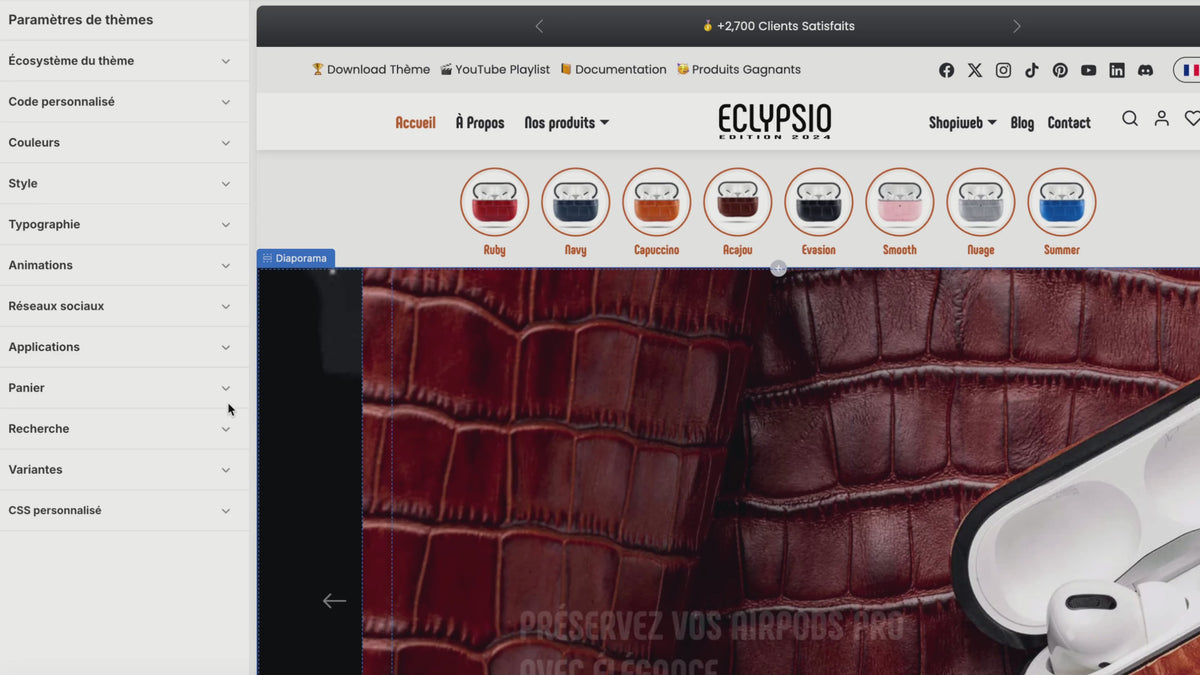 Créez votre boutique en ligne en un rien de temps grâce à nos sections préfabriquées. Chaque section est personnalisable selon votre identité visuelle. Couleurs, marges, effets, animations, tout est là. Il suffit de sélectionner les options depuis des menus déroulants. Que vous soyez débutant ou expert, le thème SHOPIWEB PREMIUM vous permet de transformer vos idées en une boutique en ligne magnifique dont vous serez fier. Mettez facilement en valeur vos produits et concentrez-vous sur l'essentiel : faire grandir votre marque.