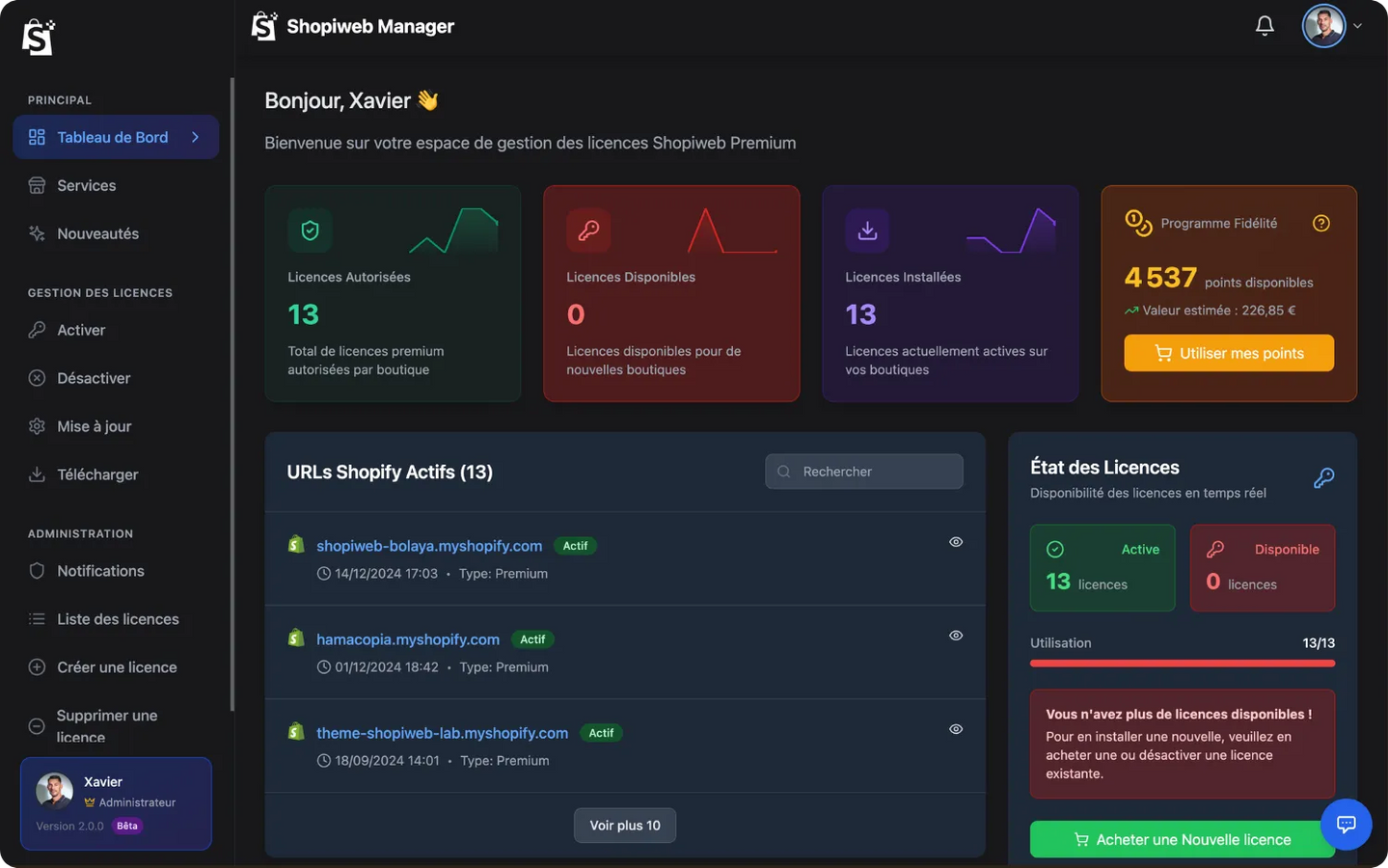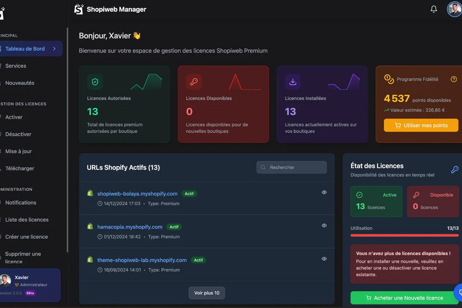 Activez, désactivez et effectuez les mises à jour pour chacune de vos licences grâce à SHOPIWEB MANAGER.